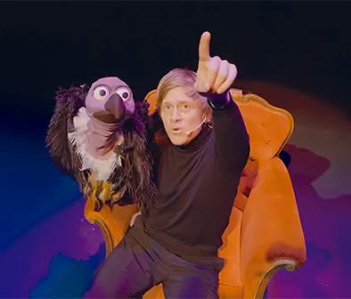 Jaime, “El ventrílocuo” siempre llega solo, se presenta solo, actúa solo y, desde luego, habla solo. Sin embargo, cuando él está en escena, una multitud de seres nos acompaña y las cosas, hasta las más insignificantes, toman la palabra: un trozo de papel, un verdadero circo de pulgas o un buitre leonado que canta góspel.